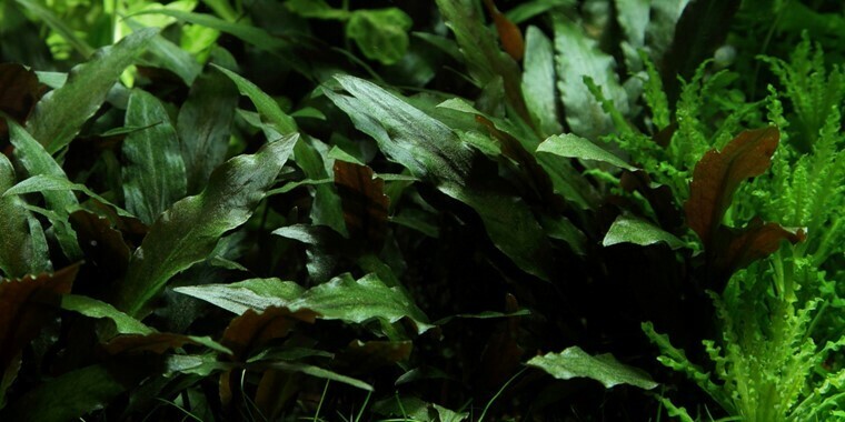 Cryptocoryne beckettii 'Petchii' is a small variety of Cryptocoryne beckettii from Sri Lanka, which has beautiful, slightly fluted leaf margins, 3-5 inches long. Leaves become dark olive-brown with violet underside. Like many other Cryptocorynes, the leaf colour and shape depends largely on environmental conditions in the aquarium.