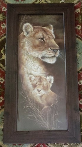 Crystal Art Gallery ~ Wooden Framed Print ~ Tiger & Baby Cub ~ 23.25" x 11.25"