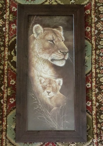 This sale is for one (1) Crystal Art Gallery Framed Print Tiger baby cub in picture Brown black wooden frame Outside frame dimension measures approximately 23.25" tall x 11.25" wide x .75" thick Sawtooth hanger on backside for easy hanging Made in U.S.A. Please view photos for a good description of this framed print Thank you!