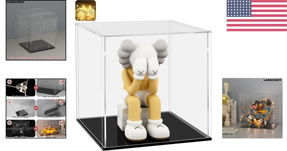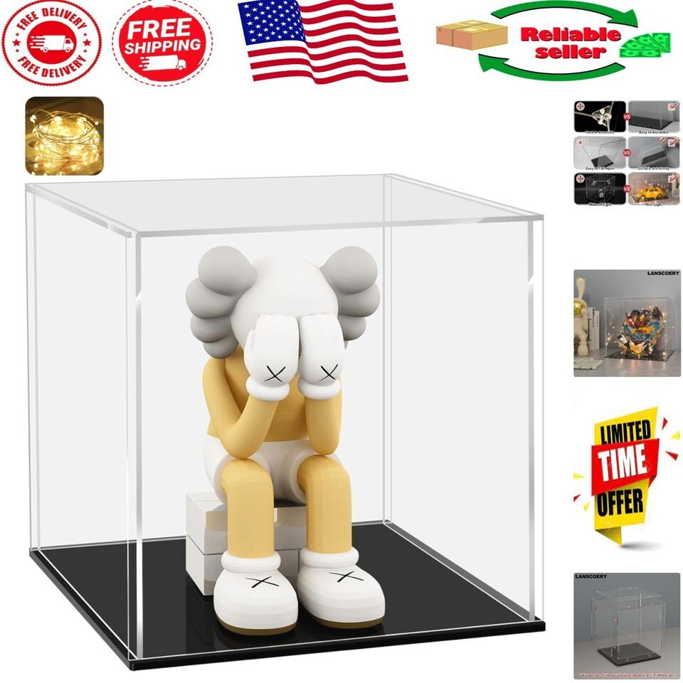 - Crystal-Clear Acrylic Showcase with Black Base & LED Lights for Collectibles