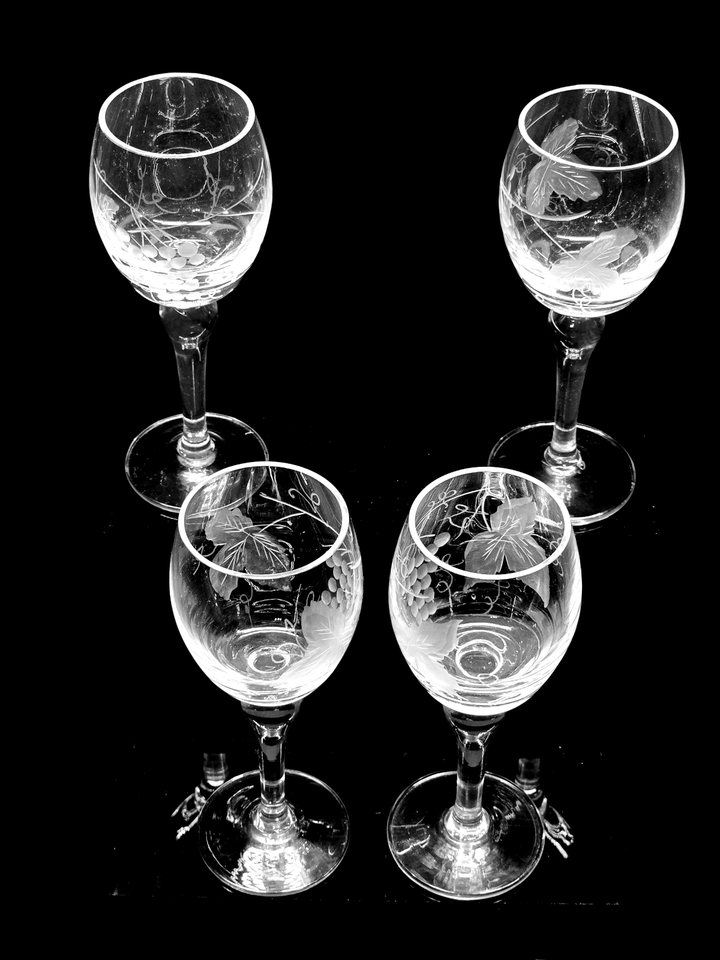 Nice set of 4 Grape Vine wine glasses by CCI in excellent condition. Great clarity,
