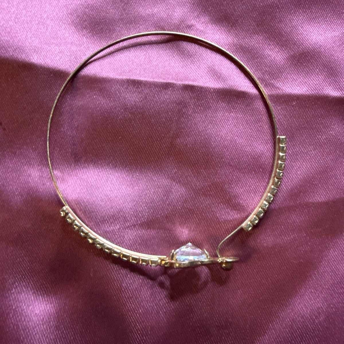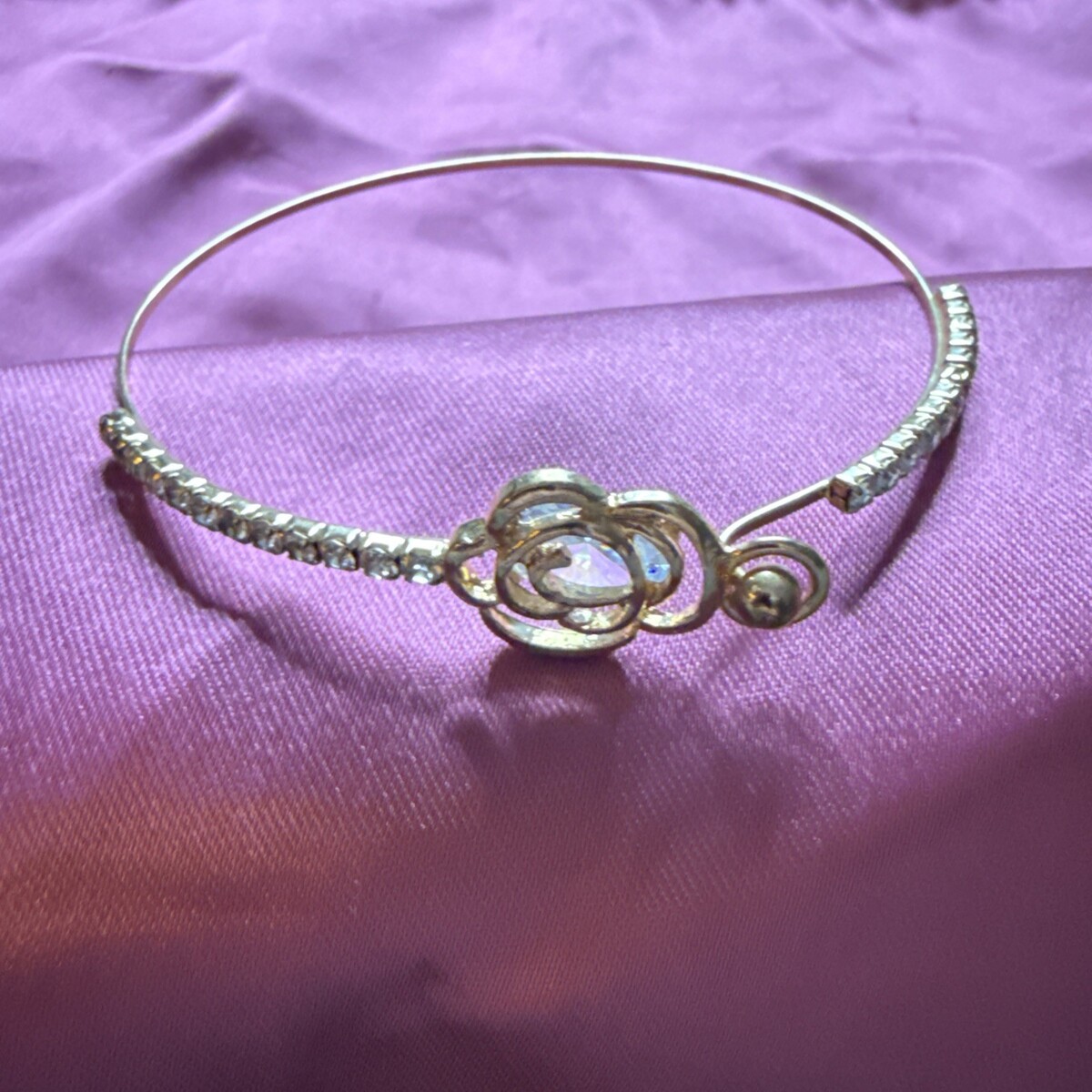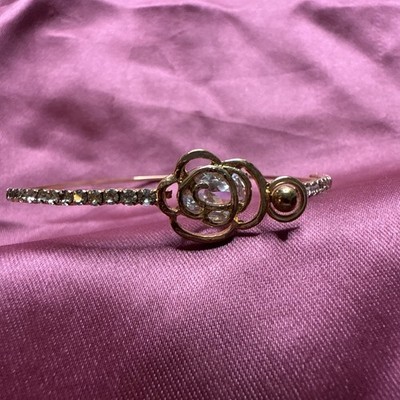 Crystal Rose Flower Bangle Cuff Bracelet Jewelry Gold Tone w/ Crystals. Condition is Pre-owned. Shipped with USPS Ground Advantage.