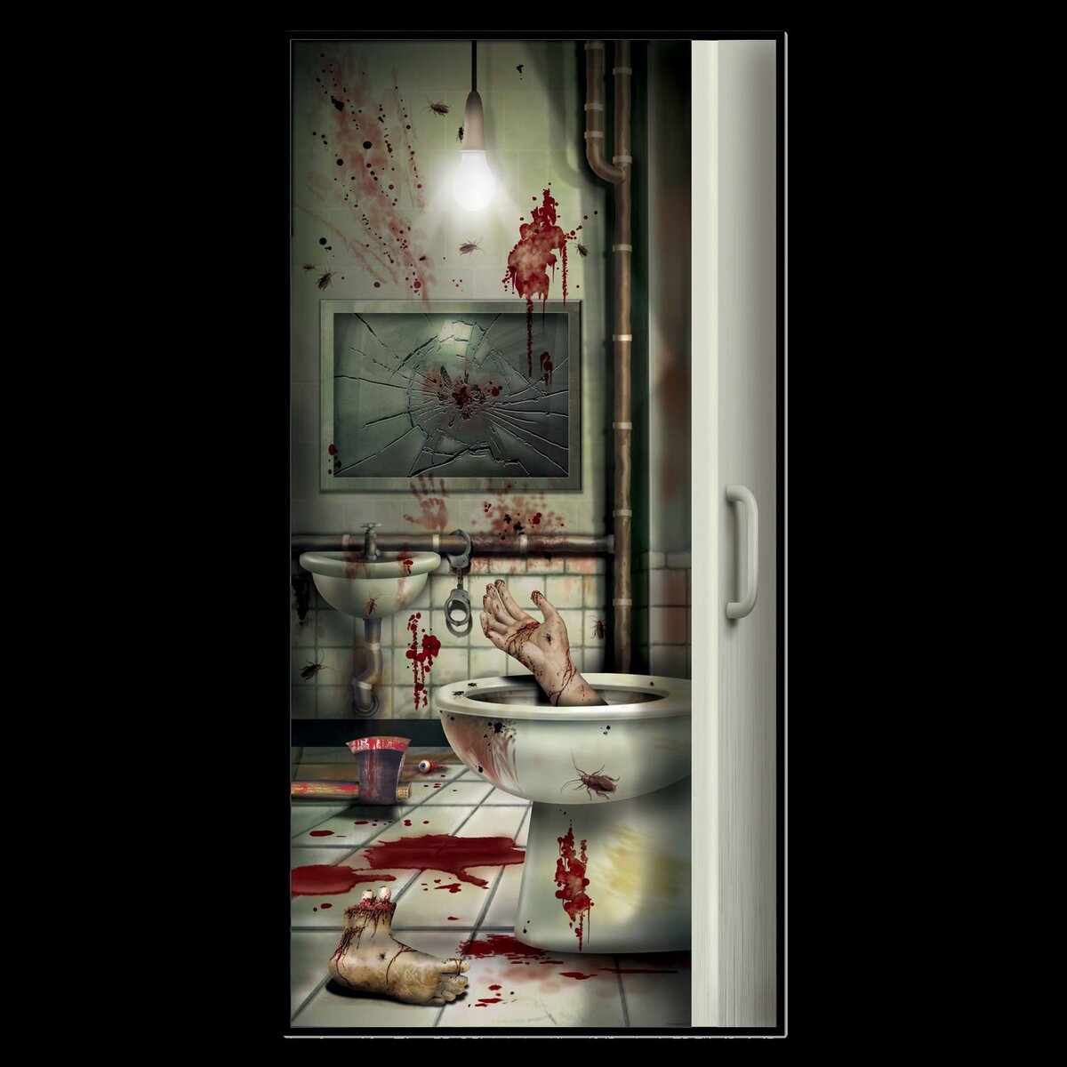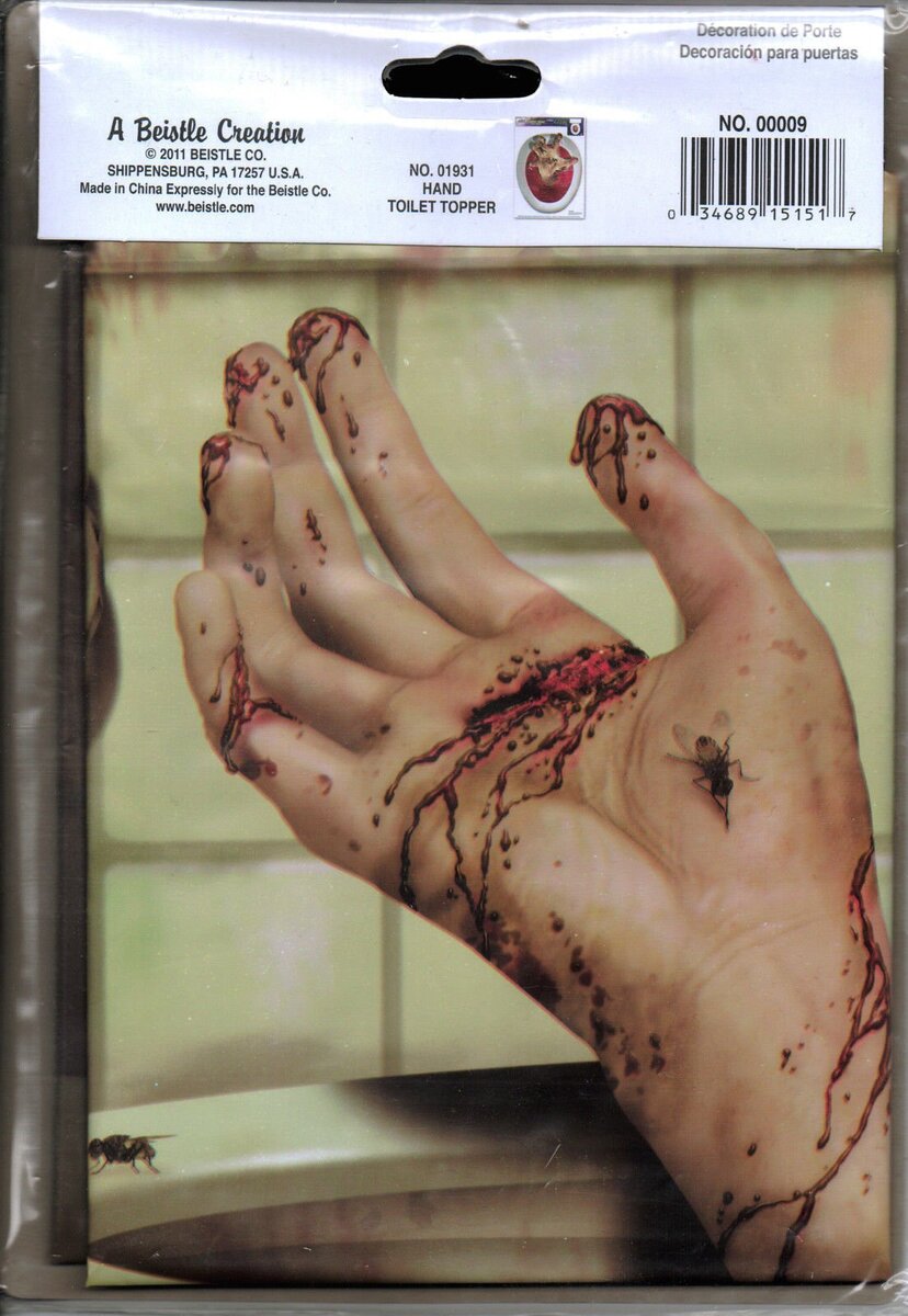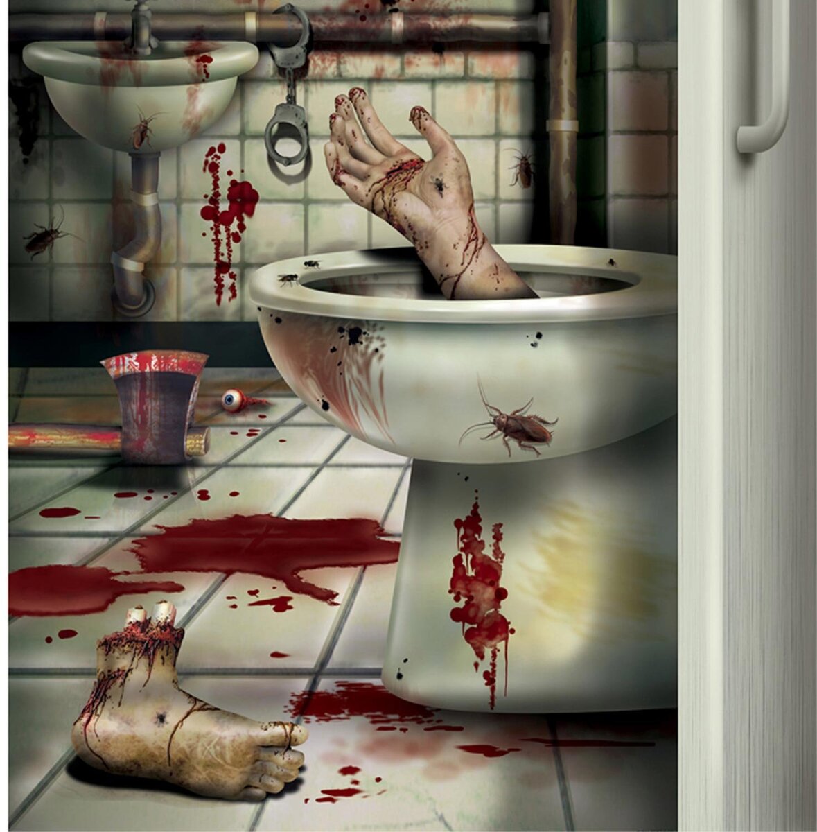 Bloody Horror Psycho Toilet CREEPY CRAPPER BATHROOM DOOR COVER Restroom Potty Loo Gothic Walking Dead Theme CSI Dexter Lab Severed Body Parts Trophy Costume Party Serial Killer Murder Haunted House Halloween Decoration Prop Building Scene Setter- CREEPY CRAPPER BATHROOM DOOR COVER Create a Scene Horror Movie Decor Spooky Restroom Wall, Shower, Window, Bedroom Mural, Rotting Fun Gag Gift, TABLE CLOTH COVER or SCENERY BACKDROP Haunted House, Halloween Party, Horror Castle, Torture Chamber, Dungeon, Murder Mystery Theme Decor Prop Accessory. Creepy door cover, featuring bloody handprints and smeared blood and body parts strewn about from a recent frenzied massacre! Realistic looking door displays torture chamber bath decor, complete with scary bloody spatters, smudges, drips, drops, carnivorous bugs and bloodied weapons. Cover measures 30-inch wide x 5 feet tall. Attaches with your own tape (*tape NOT included) so it can be taken down, folded and reused year after year. Halloween Ghostly Horror Door Poster Cover Banner Decoration for Standard Size Door Door Cover Pscycho Dexter-theme Serial Killer Design is plastic, so can be wiped clean. Also makes a weird gruesome basement, cellar, garage, or refrigerator door cover, too. Plastic Door Cover that can be placed over your bathroom door, bedroom door (off limits) or use as part of a Scene Setter Gruesome Multi- Color Plastic Use indoors or out... Create the scariest Halloween house on the block For decorative purposes only. Exported By HORROR-HALL Halloween Props Decorations Costume Accessories Additional Details ------------------------------ Product description: Bloody Horror Psycho Toilet CREEPY CRAPPER BATHROOM DOOR COVER Restroom Potty Loo Gothic Walking Dead Theme CSI Dexter Lab Severed Body Parts Trophy Costume Party Serial Killer Murder Haunted House Halloween Decoration Prop Building Scene Setter- CREEPY CRAPPER BATHROOM DOOR COVER Create a Scene Horror Movie Decor Spooky Restroom Wall, Shower, Window, Bedroom Mural, Rotting Fun Gag Gift, TABLE CLOTH COVER or SCENERY BACKDROP Haunted House, Halloween Party, Horror Castle, Torture Chamber, Dungeon, Murder Mystery Theme Decor Prop Accessory. Creepy door cover, featuring bloody handprints and smeared blood and body parts strewn about from a recent frenzied massacre! Realistic looking door displays torture chamber bath decor, complete with scary bloody spatters, smudges, drips, drops, carnivorous bugs and bloodied weapons. Cover measures 30-inch wide x 5 feet tall. Attaches with your own tape (*tape NOT included) so it can be taken down, folded and reused year after year. Halloween Ghostly Horror Door Poster Cover Banner Decoration for Standard Size Door Door Cover Pscycho Dexter-theme Serial Killer Design is plastic, so can be wiped clean. Also makes a weird gruesome basement, cellar, garage, or refrigerator door cover, too. Plastic Door Cover that can be placed over your bathroom door, bedroom door (off limits) or use as part of a Scene Setter Gruesome Multi- Color Plastic Use indoors or out... Create the scariest Halloween house on the block For decorative purposes only. Exported By HORROR-HALL Halloween Props Decorations Costume Accessories