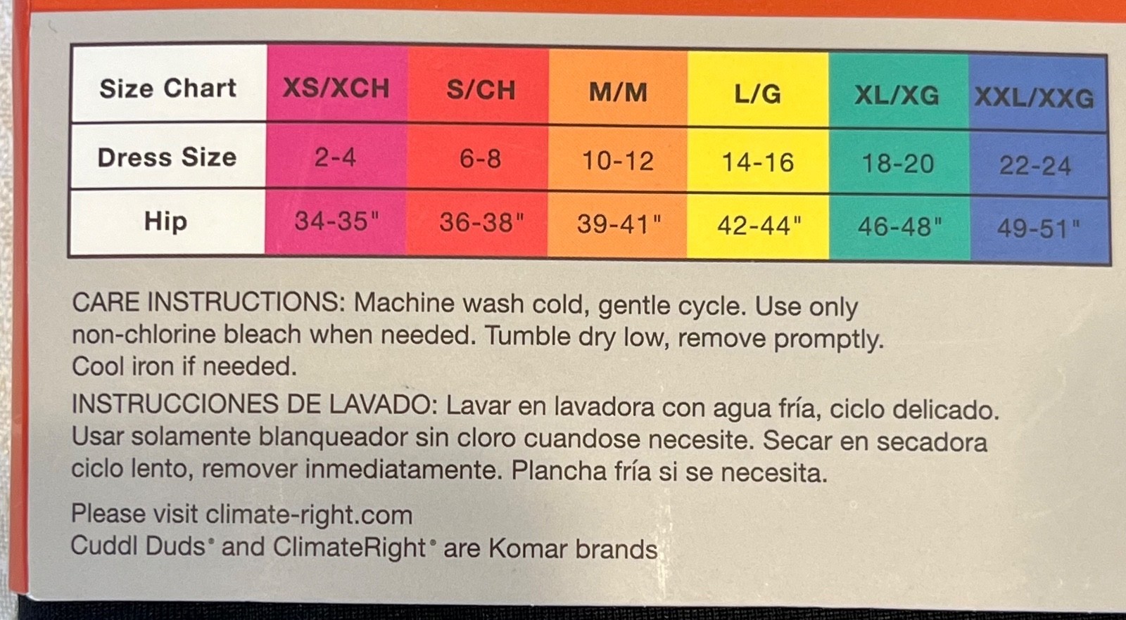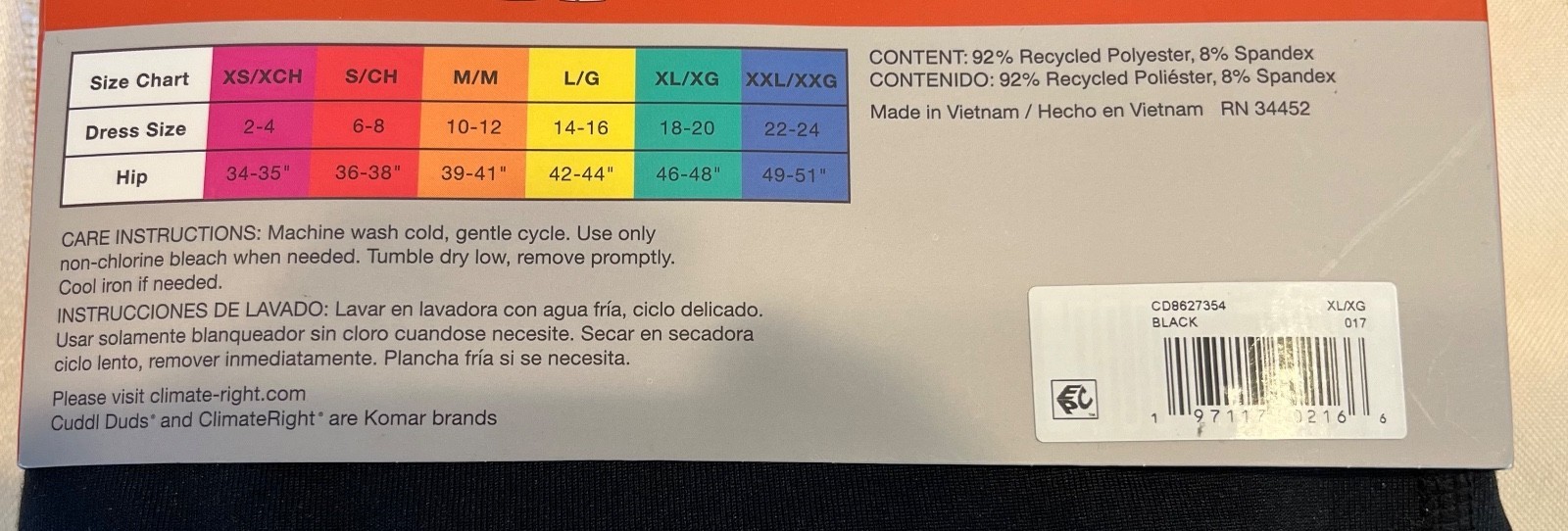 Cuddl Duds Climate Right Leggings Base Layer Plush Warmth XL Black NIP