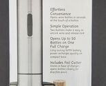 The Cuisinart Electric Wine Opener in Black Stainless Steel, model CWO-25, is a contemporary-style corkscrew designed for simple operation. It features a rechargeable battery for convenient use and is made of durable stainless steel. The sleek silver and black color combination adds a touch of elegance to any kitchen or bar area. Perfect for wine enthusiasts looking for a reliable and stylish electric corkscrew to add to their collection. New in box. bpa free. The photos provided is from the actual item.