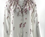 Cupcakes Cashmere Top Size M White Pink Floral Button Up Ruffle Balloon Sleeve