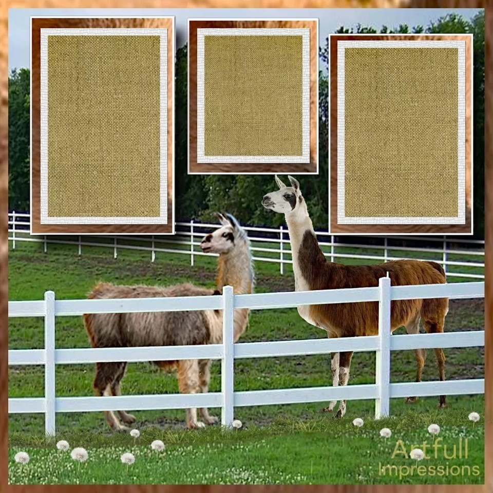 12" x 12" art prints, featuring friendly llamas in a peaceful farm