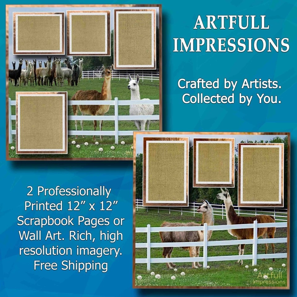 Llamas - Set of 2 Llama Farm Personalized Wall Art or Scrapbook Pages