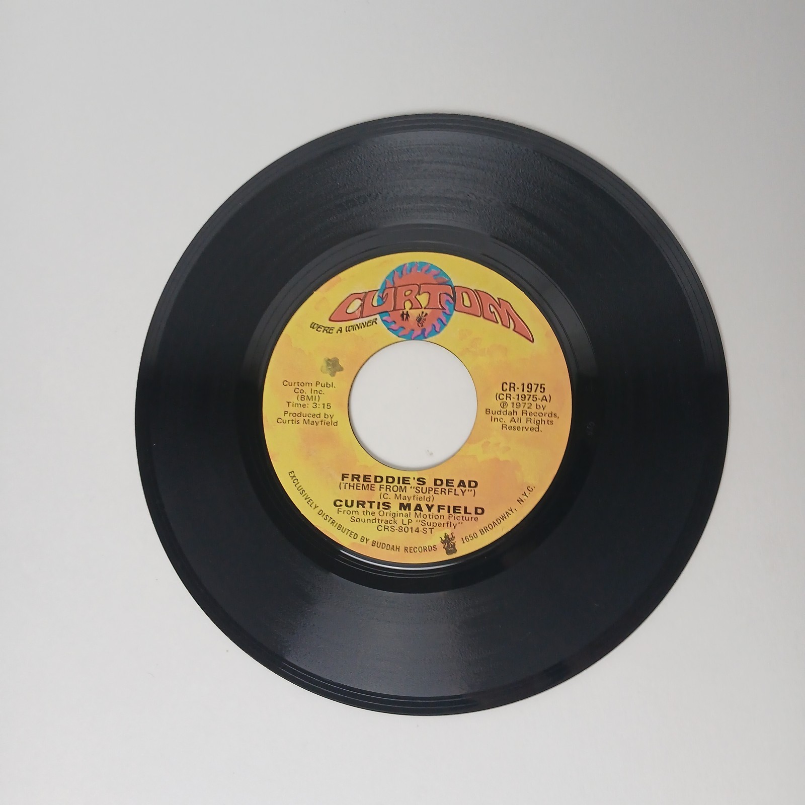 Curtis Mayfield This listing is for a single 7 inch 45 rpm record. It features 1 song per side from the following artist/s: Artist: Curtis Mayfield side A: Freddie's Dead (Theme From Superfly) side B: Underground Copyright 1972 Curtom Record Company Record condition: Very Good Sleeve condition: Very Good, minor wear, no seam splits This item ships US Media Mail. International buyers use international shipping. This item will be shipped in a standard carboard record mailer.