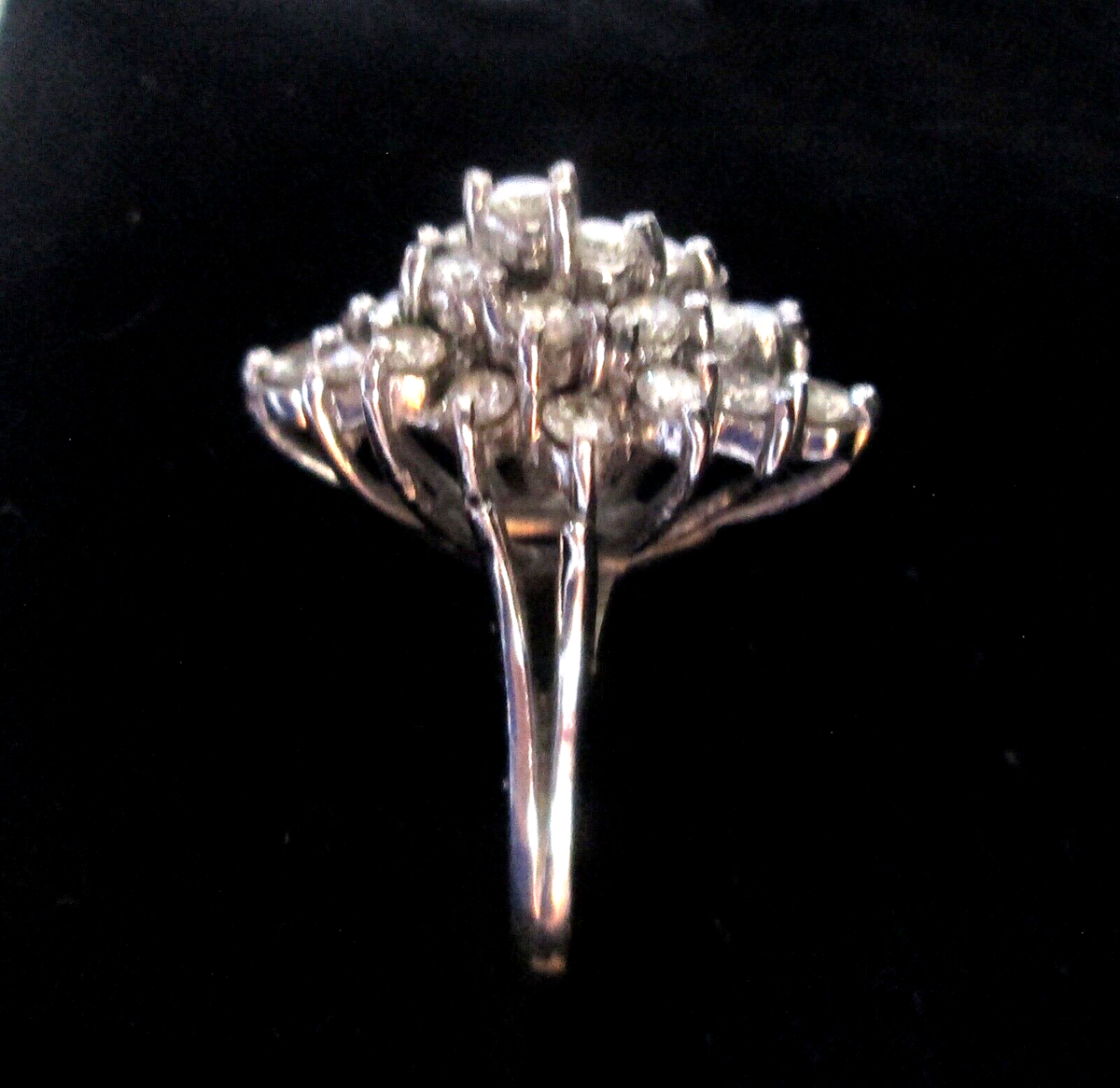 - Custom 14Kt White Gold Cocktail Ring, 75ct, 24 Round Facet Cut Diamonds size 6.5