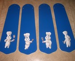 Your bid is for a brand new in the box 42" white flushmount ceiling fan with single school house style light fixture attached. Only the blades have been removed to be custom painted and decorated with adorable Doughboy. I am not affiliated with any store. I use only licensed graphics. The blades are then sealed with a polyacrylic to protect the finish. Doughboys are randomly placed and there is no choice, but you will receive 4 different doughboys