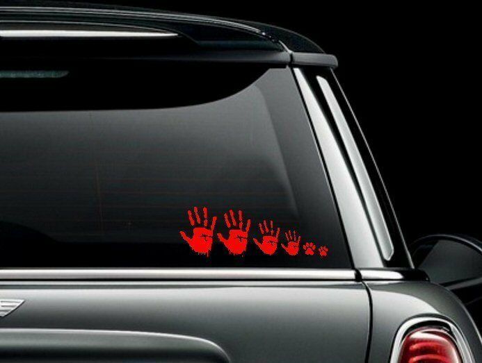 This is a custom Zombie Family Bloddy Handprints vinyl car/truck window decal.