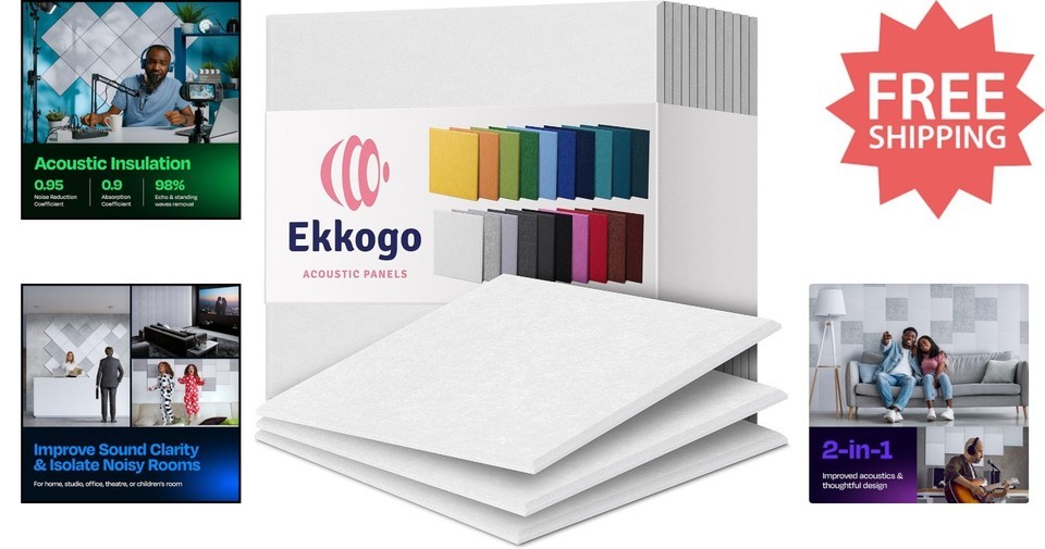 - Customizable 12-Pack Soundproof Wall Panels 12"x12"x0.4" - Eco-Friendly Design