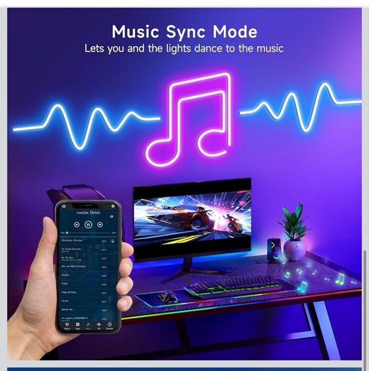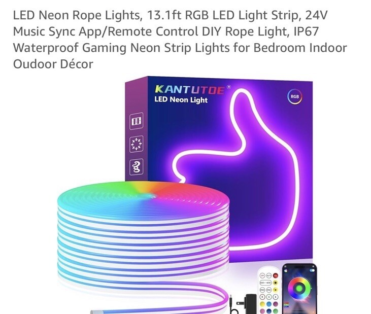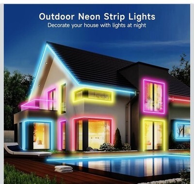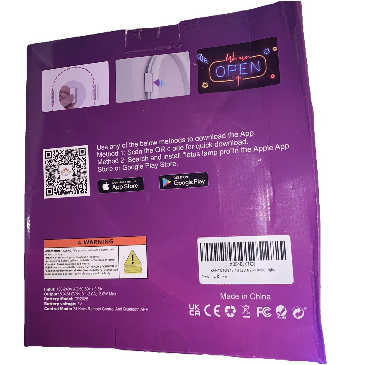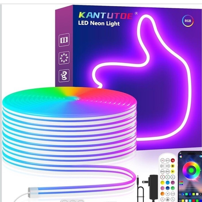 The customizable 13.1ft LED Neon Strip Lights are a modern and stylish lighting solution perfect for various occasions such as Christmas, anniversaries, birthdays, Halloween, and Thanksgiving. With 150 multicolor LED lights controlled by an app or remote, these lights offer a flexible and waterproof design suitable for both indoor and outdoor use. The music-reactive style adds an extra touch of fun and creativity to any room or space, making them a perfect addition for teens, adults, and kids alike. Whether used in the bedroom, living room, kitchen, game room, or outdoor space, these LED Neon Strip Lights are sure to add a unique and vibrant touch to any decor. No box might be slightly damaged