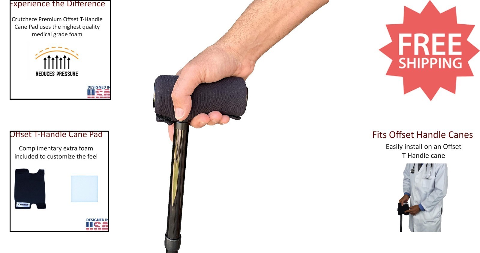 Experience unparalleled comfort with the Crutcheze Offset T-Handle "Fritz" Cane Pad. Designed with high-density foam and non-slip fabric, it provides pressure and abrasion relief on your cane handle. Easy to install with a secure velcro wrap, it fits cane handles with approximately 4" circumference, ensuring a snug and secure fit. Each pad includes an extra foam piece for personalized cushioning, crafted in the USA with durability in mind. Upgrade your walking experience with confidence?satisfaction is guaranteed with our 60-day money-back policy. Perfect for both men and women, this cane pad makes mobility more comfortable and secure.