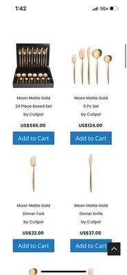 CHECK OUT MY OTHER LUSTINGS FOR SOUP SPOONS, TEA SPOONS, DESERT FORK ( smaller one in the picture), a KNIFE Have 4 matte gold flatware dinnerforks from Cutipol's Moon collection. Price per one. Elegant and modern design with a matte finish. Perfect for everyday use or special occasions. Durable and easy to clean. Ideal addition to any flatware collection or kitchen setup.
