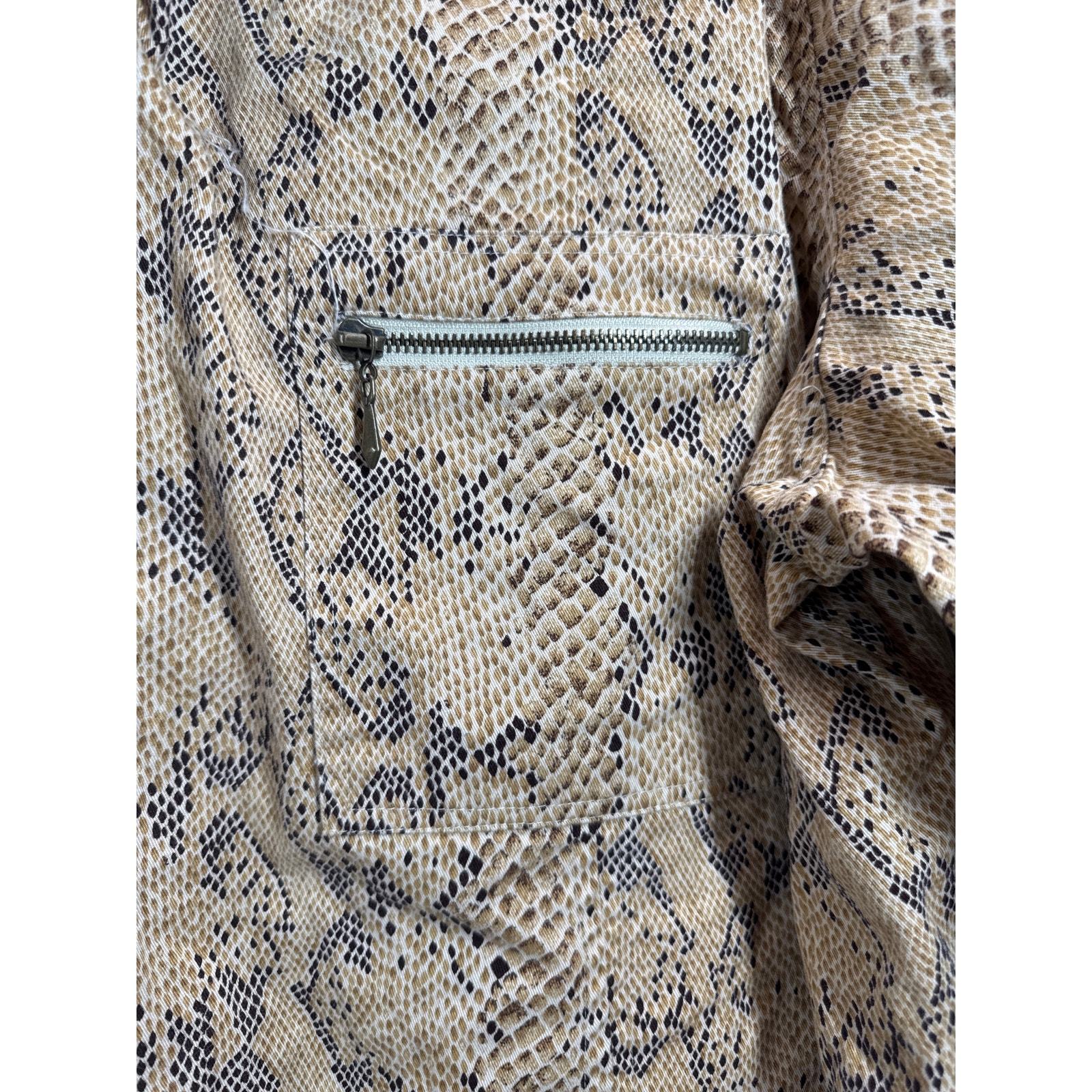 - D.P.S Womens Zip Front Shirt Jacket Beige White Python Snakeskin Print Sz 3X/4X