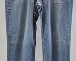 Timberland Straight Fit Denim Jeans Men Medium Wash Blue Size 34 x 32 99% cotton 1% spandex Measure about 43" in total length Actual inseam is closer to 31" due to washes Jeans are in used condition with some marks and light stains when examined closely. The rear patch is faded and flaking.