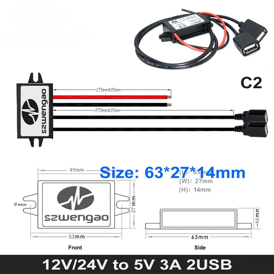 - DC 12V/24V to DC 5V 3A 15W Step Down Buck Converter Power Supply Module for Car