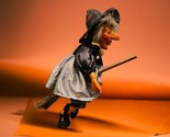 Primary image for DEPT 56 Halloween Witch Riding Broom Gray Black Dress 12" Retired 2002