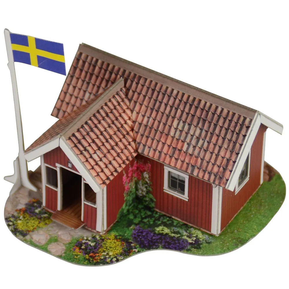 Build your own piece of Nordic charm with this DIY 3D paper model kit of a traditional Scandinavian house in HO scale (1:87). Painted in the classic red-brown hue typical of Sweden, this miniature captures the cozy and authentic look of northern architecture. Perfect for model railway layouts, architectural collections, or as a relaxing craft project. Features: Model type: 3D paper puzzle kit Style: Scandinavian / Swedish house Scale: HO 1:87 Parts count: — see product photos Difficulty: ????? (moderate) Recommended age: 7+ Finished size: see product photos Material: Double-sided cardboard (1 mm), tracing paper windows No scissors or glue required for assembly ? What’s included: Pre-cut cardboard parts Window material Illustrated assembly instructions Ideal for railway dioramas, Nordic-themed décor, or as a unique gift for architecture lovers.