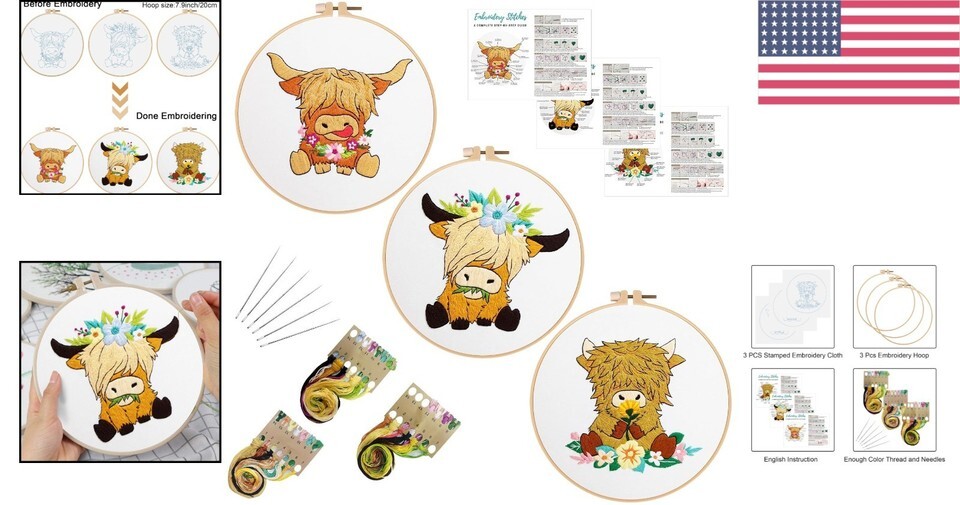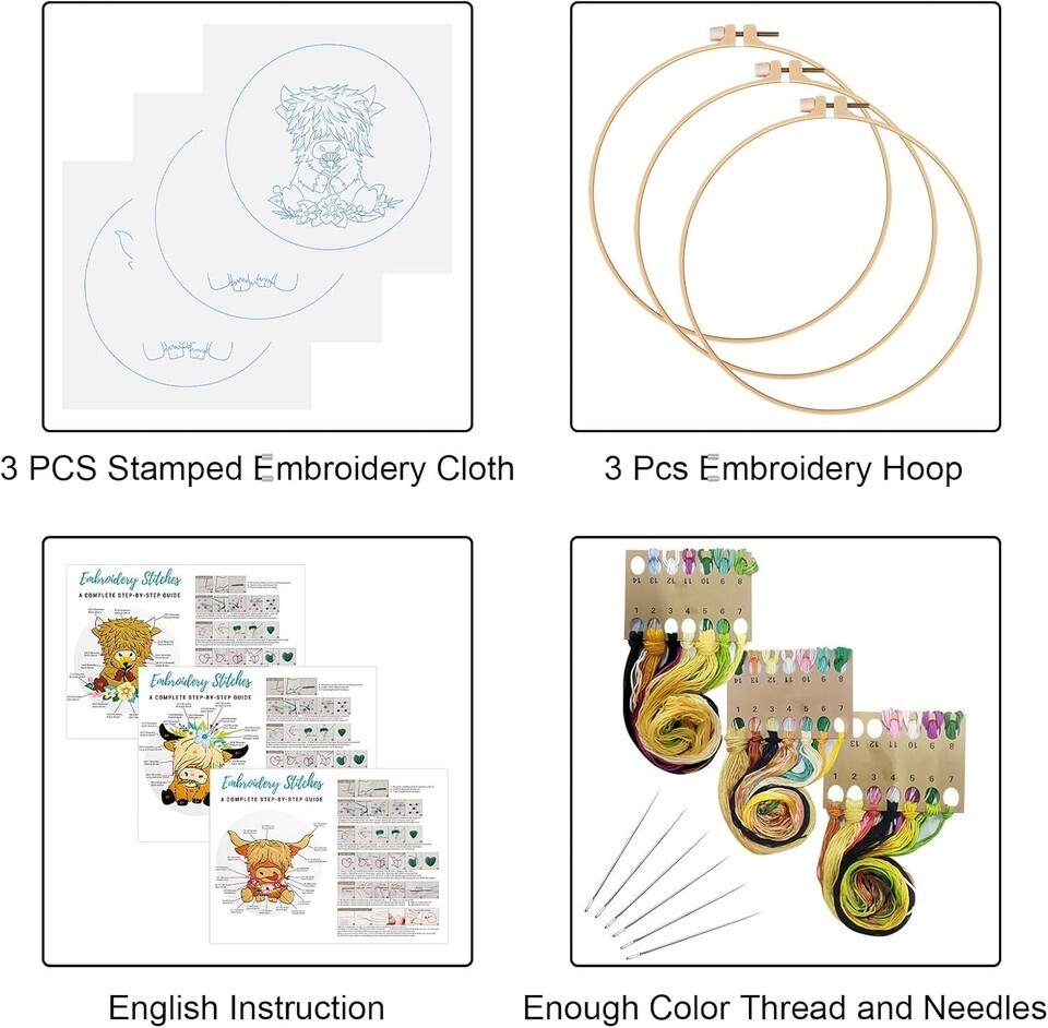 - DIY Cross Stitch with 3 Highland Cow Pattern Kits - Perfect for All Ages