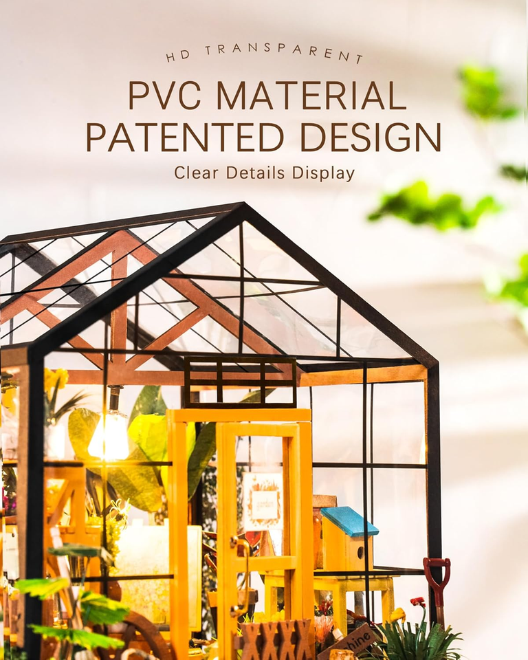 DIY Miniature Greenhouse Dollhouse Kit with LED & Furniture – Wooden Model