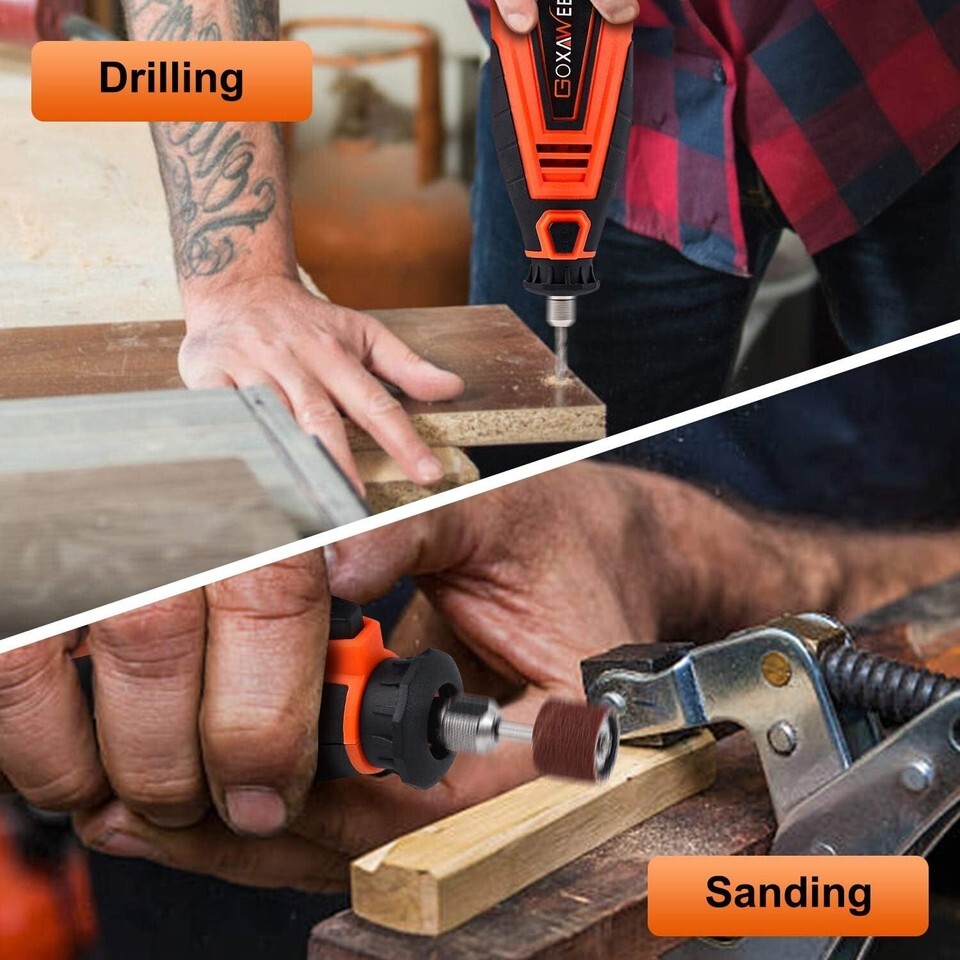 ?Versatile Rotary Tool: This premier rotary tool is an ideal selection for all types of small home projects or DIY crafts. The comprehensive kit includes 181 rotary tool accessories such as cutting discs, sanding drums, and bits, providing all you need for sanding, polishing, cutting, engraving, and much more. Suitable for use on metal, ceramic, stone, glass, plastic, and wood!