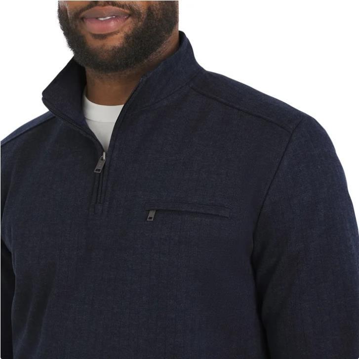 DKNY Mens Sweater Blue 1/4 Zip Herringbone Mock Neck Pocket Long Sleeves