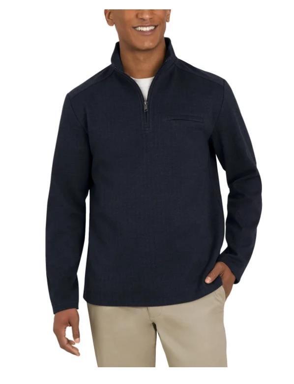 - DKNY Mens Sweater Blue 1/4 Zip Herringbone Mock Neck Pocket Long Sleeves