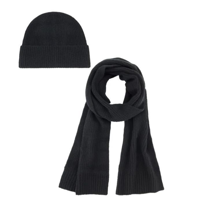- DKNY Womens Scarf Hat Set Black Cashmere 2-Piece Winter Christmas Gift Holiday