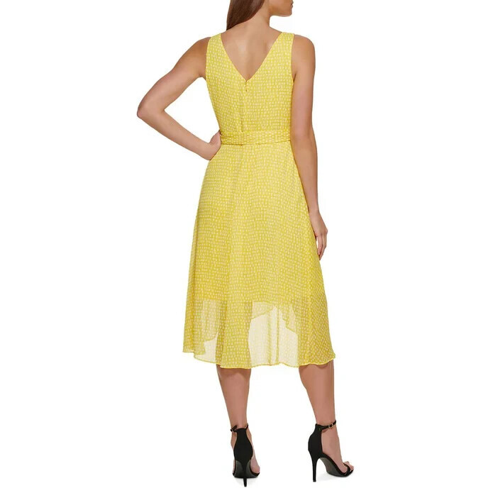 DKNY Womens Yellow Polkadot Chiffon Midi Fit & Flare Dress Sleeveless Size 4