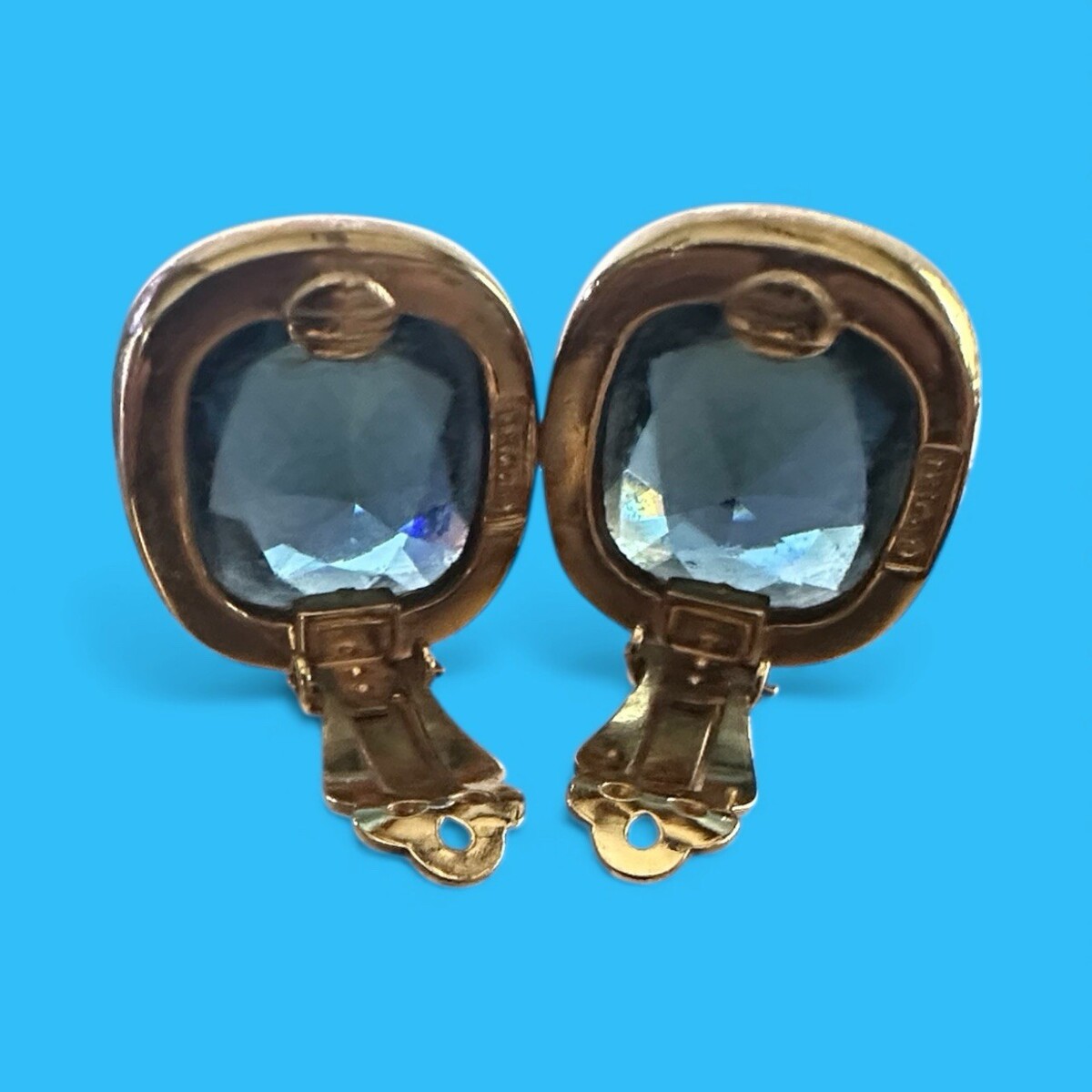 - DS Co. Daniel Swarovski Sapphire Blue Crystal Clip-On Earrings Gold Tone Signed