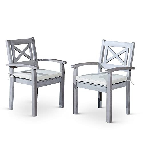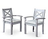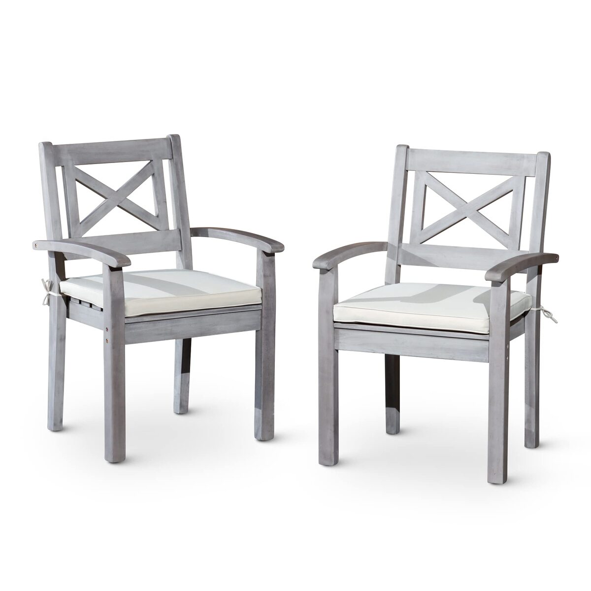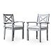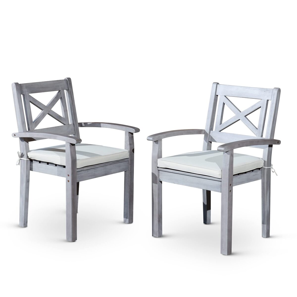 Outdoor Dining is a quintessential summer pleasure with this farmhouse inspired dining set. Expertly crafted with turned leg detailing on the dining table and X-back styling on the armchairs. The multi-step, hand applied Silver Gray finish creates an exceptional depth of color. The table features an opening in the center to accommodate an umbrella and plug for the opening when no umbrella is needed. The chairs feature a curved arm and wide seat with a detachable cushion for comfort. The dining chairs stack for ease of storage in the off season.