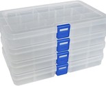 About this item Made of durable PP plastic, these storage boxes keep contents organized with adjustable dividers that create up to 15 compartments Set includes 4 white rectangular boxes measuring 6.77 x 3.94 x 0.87 inches; Each compartment sized from 6.57 x 1.18 x 0.79 inches to 1.26 x 1.18 x 0.79 inches Versatile organizer ideal for storing small items like jewelry, beads, nails, fishing tackle, and more; Lid closes securely with buckle Removable dividers allow customization of compartments; Most grids can be moved or removed to accommodate various objects Stackable design saves space; See-through material makes contents visible at a glance; Handle on lid makes transport easy
