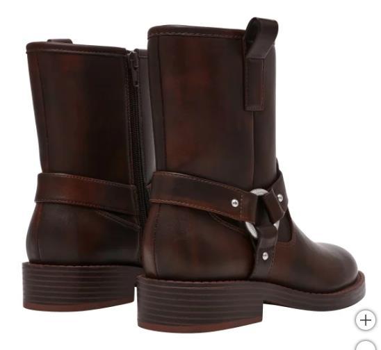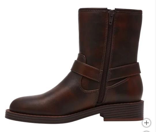 - DV by Dolce Vita Womens Biker Boots Brown Moto Side Zipper Low Block Heel