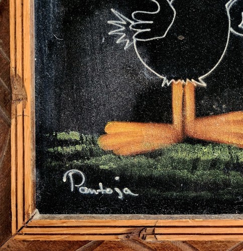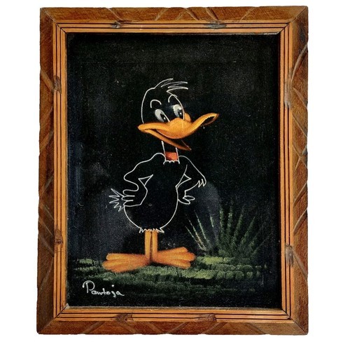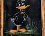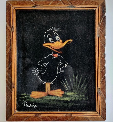 Daffy Duck Pantoja Original Signed Painting Velvet Framed c1970s 16.5x13.5" SS