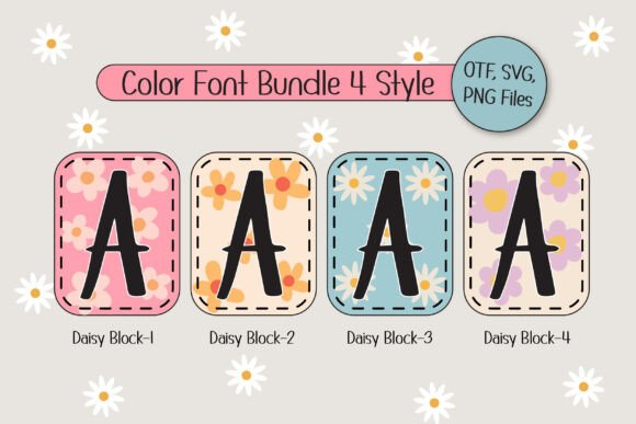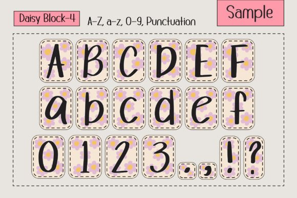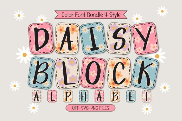 Introducing “Daisy Block Alphabet” a delightful collage-style font that combines handwritten letters with cute daisy patterns in lovely, bright vintage pastel colors. This charming font set consists of four theme color fonts, perfect for adding a floral touch to custom names, DIY craft projects, New Year party decorations, T-shirt sublimation, and more. Ideal for daisy lovers, “Daisy Block Alphabet” brings a sweet, retro vibe to your designs, making it the perfect choice for fun and creative projects!