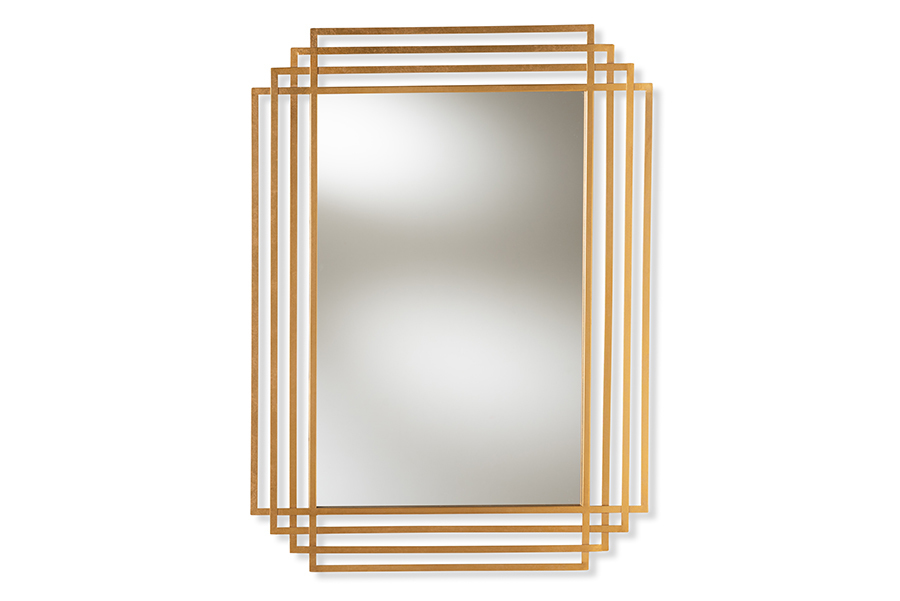 Give any room a more luxurious feel with the antique gold metal ware and ornate frame of the Dalini wall mirror. Constructed of high-quality metal with a sturdy MDF wood backing, the Dalini features mirrored glass for exceptional clarity in every reflection. Inspired by Art Deco design, the mirror showcases four overlapping rectangles for an intricate and striking display. Antique gold finishing on the frame brings a touch vintage luxury to your space. The Dalini wall mirror is made in China and will arrive fully assembled.