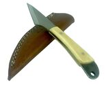 Damascus Steel Kiridashi - Japanese Style Utility Knife, with Real Rosewood Handle and a Thick, Genuine Leather Sheath.