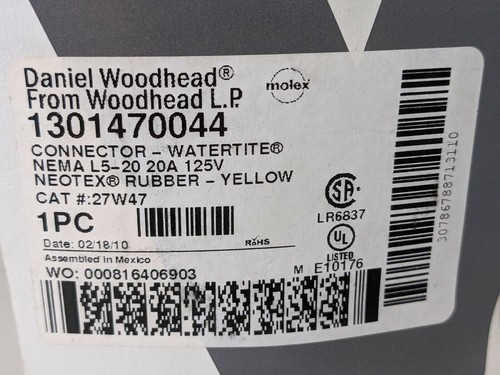 In vendita e un nuovo nella scatola aperta Daniel Woodhead 1301470044 L5-20 20A 125V Watertite Connettore 27w4 giallo