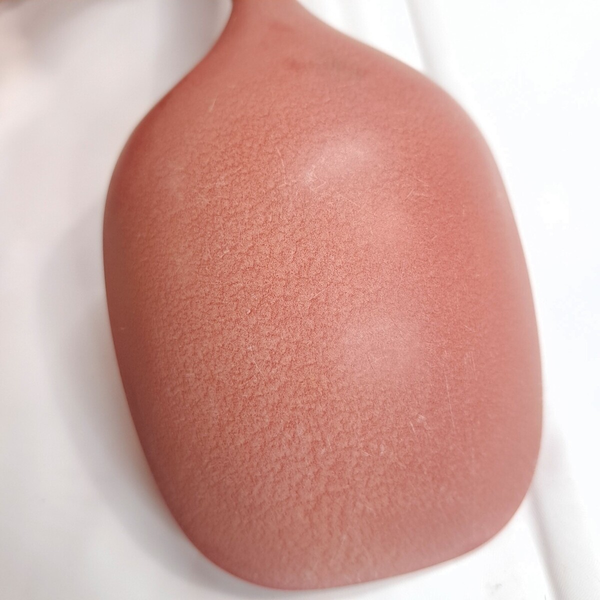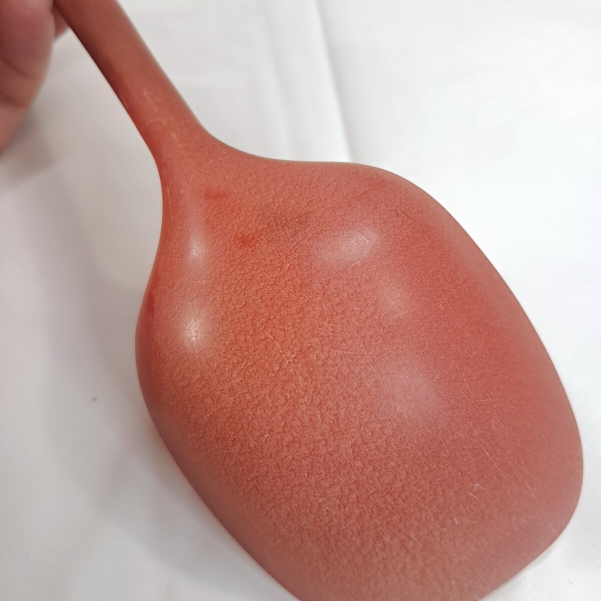 Dansk red serving spoon solid melamine red plastic cooking utensil scoop Vintage I believe this is melamine or something similar. Red/terracotta/rust color. Fading and scratches at the bowl of the spoon as shown. Spoon is a satin texture(not glossy) See pics.