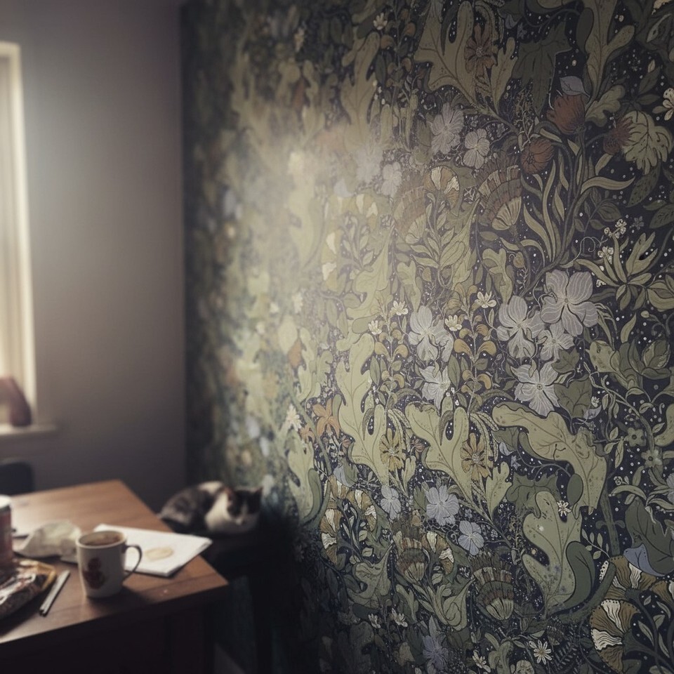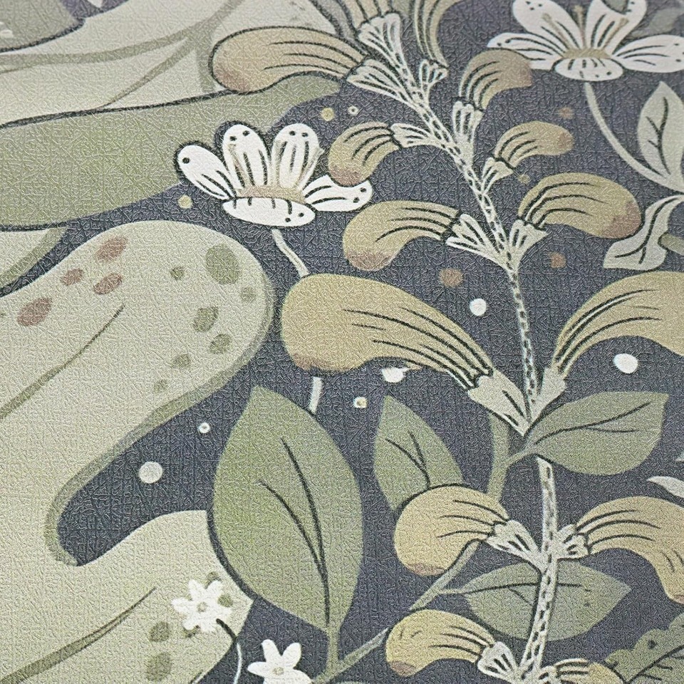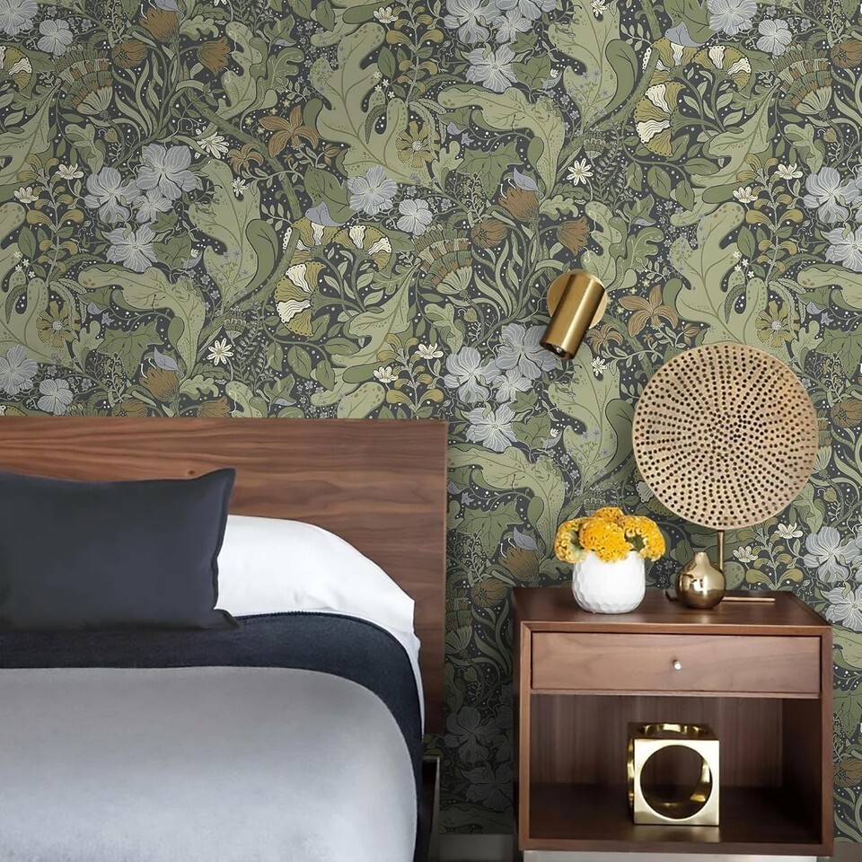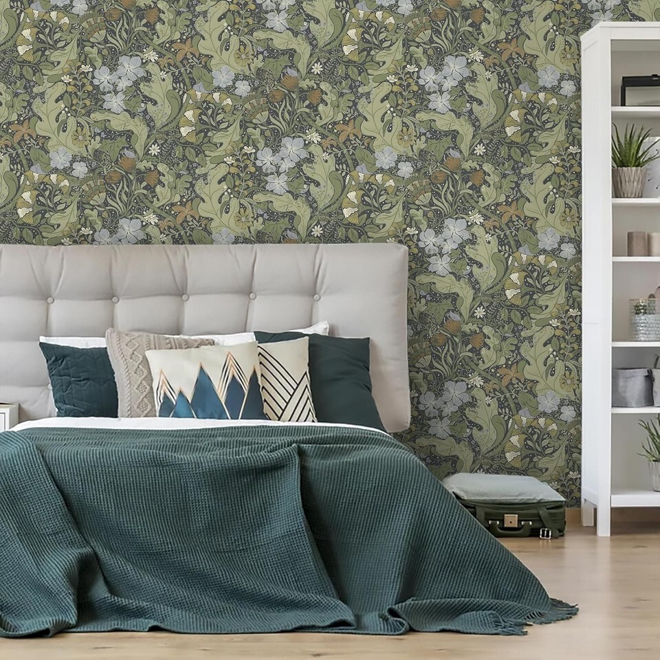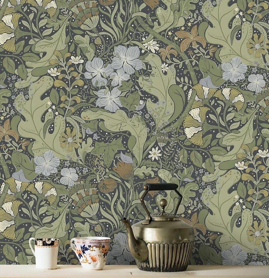Dark Green Blue Floral Peel & Stick Wallpaper - Self-Adhesive, Waterproof, Re...