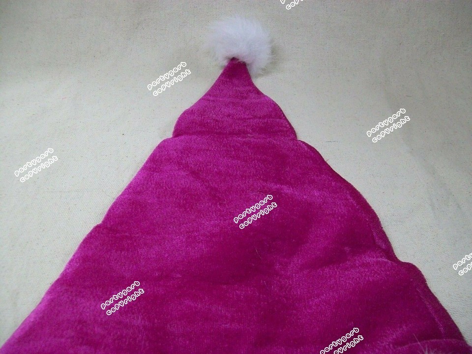 Velveteen Santa Hat with White Trim Band and White Pom Pom. Hat may require some stuffing of a lightweight material such as newspaper or tissue paper to maintain shape depending on desired look. The material may have some indentions or creases from being folded. Some loose thread strings on the interior of hat. Hat is not adjustable. Unisex. Great accessory for an ugly sweater party. Exact colors cannot be guaranteed. Monitors and screens display colors differently, please keep this in mind. I have no way of knowing what you are seeing. Actual Photos-Alternate Views. DOES NOT INCLUDE MANNEQUIN.