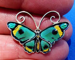 DESIGNER STERLING SILVER 925 HAND PAINTED ENAMEL DECO BUTTERFLY PIN.