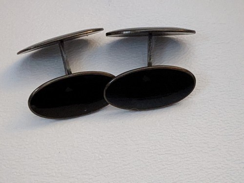 David Anderson Argent Sterling Ovale Email Noir Guilloche Boutons Vintage