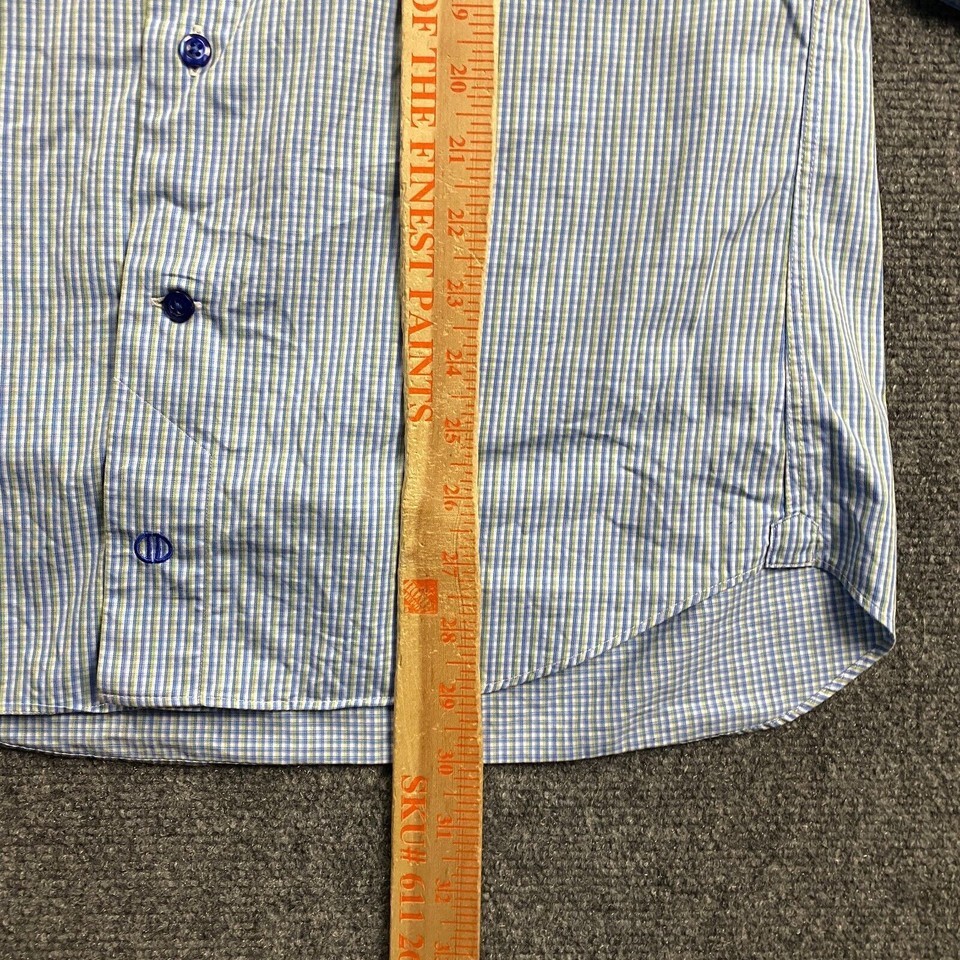 David Donahue Shirt Men's 15 Plaid Trim Button Up 32/33 100% Cotton Adults