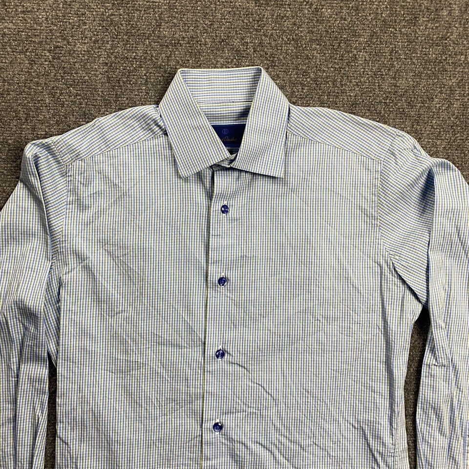 Primary image for David Donahue Shirt Men's 15 Plaid Trim Button Up 32/33 100% Cotton Adults