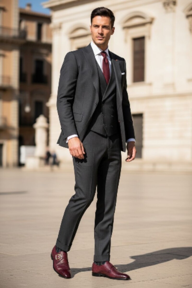 David Eden Men exotic skin Croc/ Lizard Burgundy Red monk strap shoes