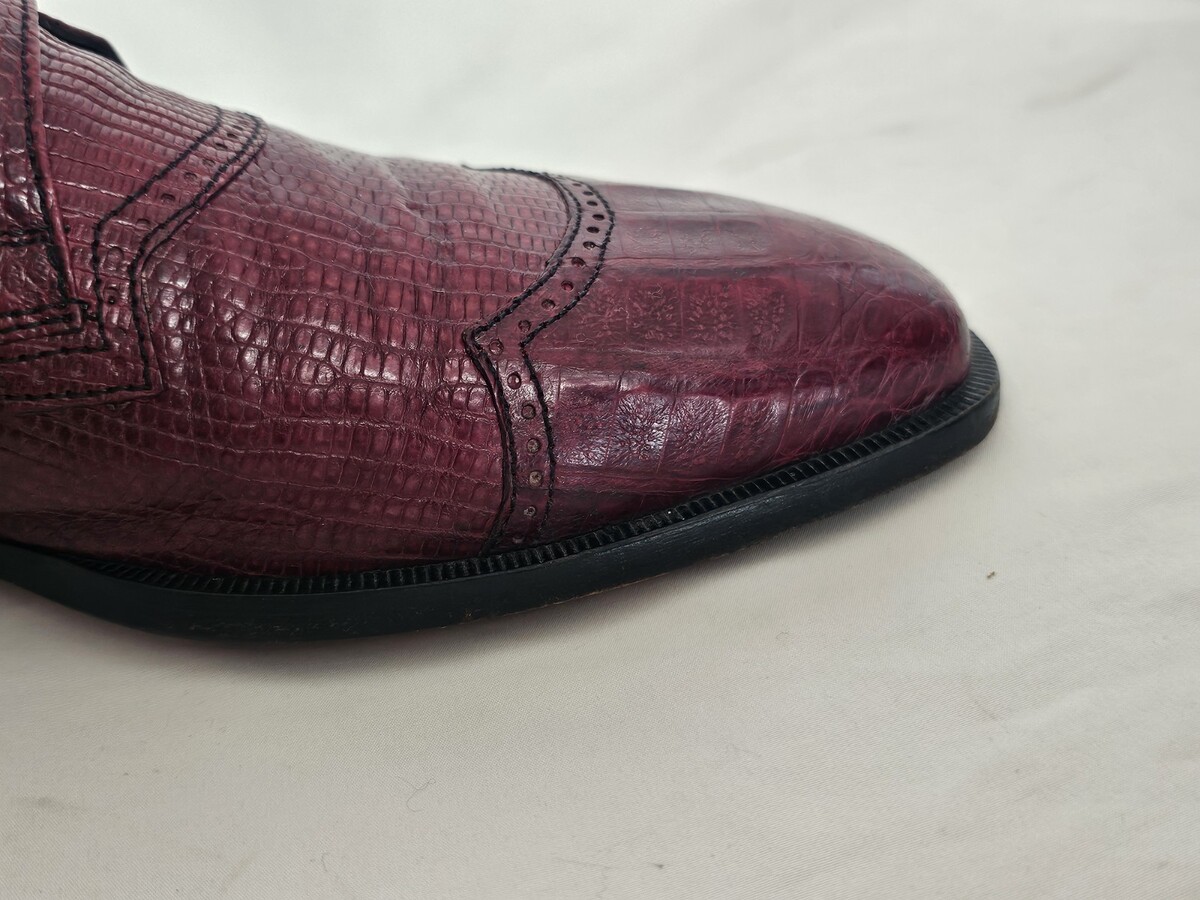 David Eden Men exotic skin Croc/ Lizard Burgundy Red monk strap shoes 10.5